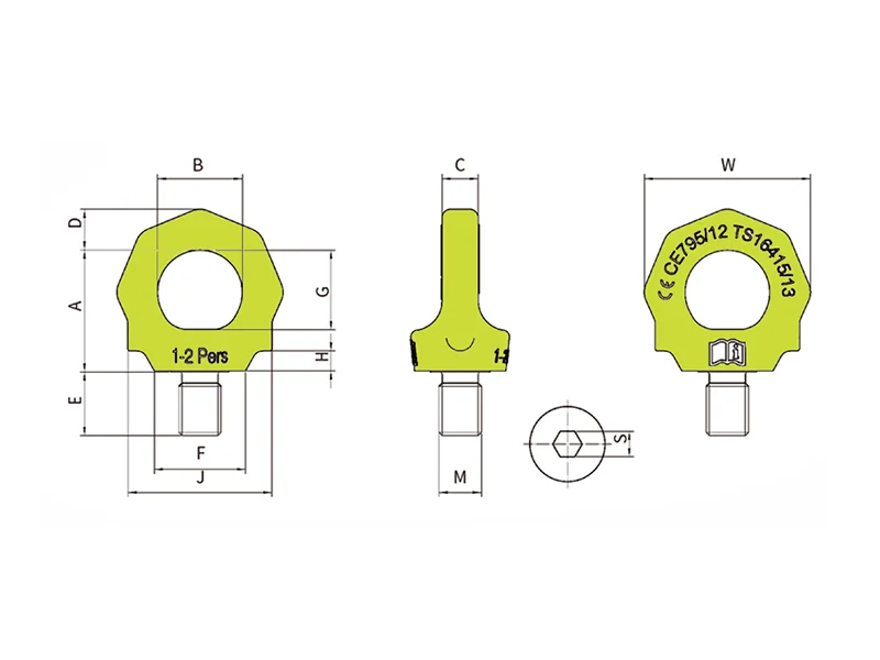The fall protection anchorage point is a personal safety device designed for high-altitude operations, ensuring secure attachment and fall prevention for up to two persons. This fall arrest eyebolt offers 360-degree rotation to automatically adjust to the direction of force, making it a reliable choice for demanding outdoor environments, including construction and aerial work.