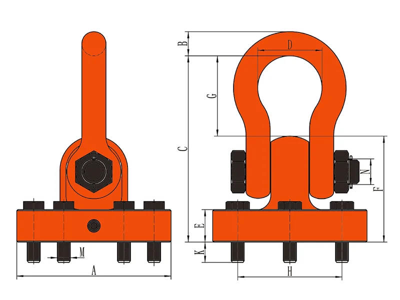 Engineered for lifting and transporting heavy-duty equipment and workpieces, the heavy duty flange lifting point supports an impressive working load limit of 85–250t. With 360° rotation and 180° pivot capabilities, it ensures secure and precise handling in demanding industrial environments.