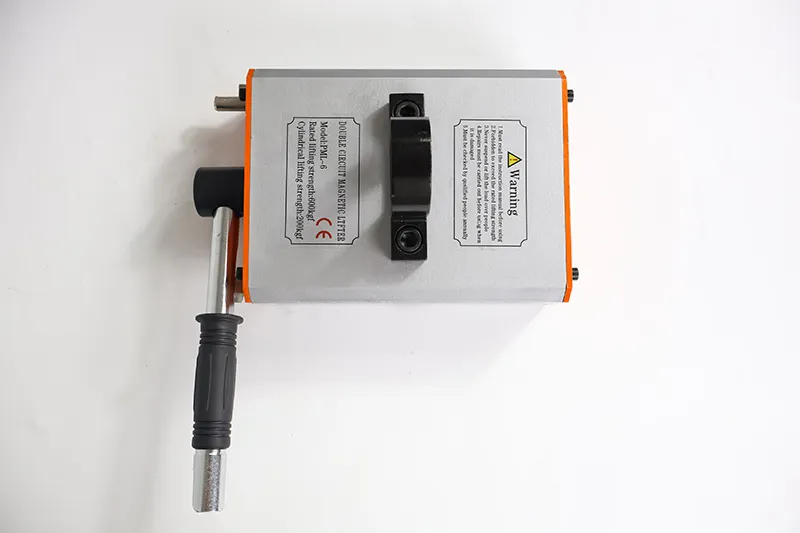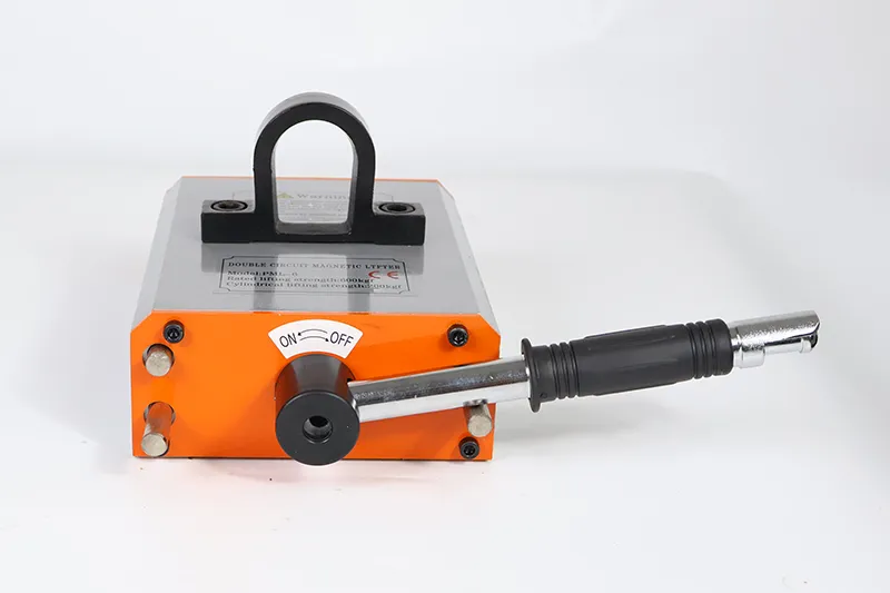 The double circuit permanent lifting magnet is designed to enhance performance when handling thin steel plates (5–15mm), offering greater efficiency and reduced operational effort compared to single-circuit magnets. With a secure handle switch equipped with a safety button and no external power requirements, it ensures ease of use and safety. This versatile permanent magnetic lifter is ideal for lifting and transporting steel plates, ferromagnetic materials, cylindrical workpieces, and molds, making it indispensable across industries such as mechanical manufacturing, automotive production, shipbuilding, port operations, and construction.